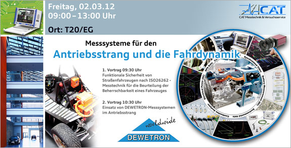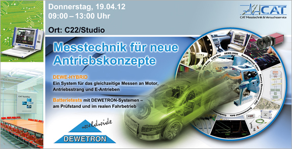 Bereits seit 2006 findet der CAT TechDay auch in Neckarsulm statt. Nächste Woche ist es wieder soweit. Das Unternehmen DEWETRON zeigt neue Messsysteme und informiert über Batterietests am Prüfstand und im realen Fahrbetrieb.