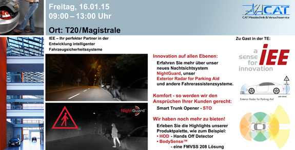 Auf dem ersten CAT TechDay im neuen Jahr haben Sie Gelegenheit die Sensor-Systeme des luxemburgischen Herstellers IEE kennenzulernen. Erleben Sie die Technologie hinter der smarten Heckklappenautomatik STO sowie den Fahrgast-Erkennungssystemen Hands Off Detection (HOD) und BodySense.