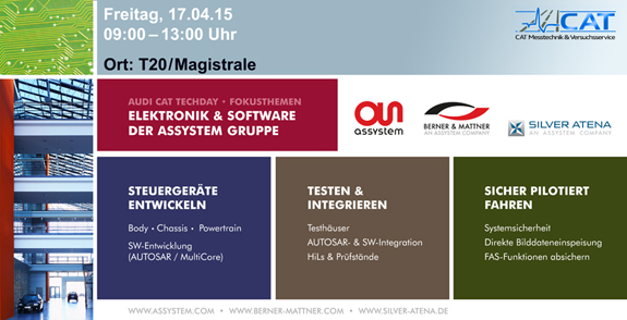 Beim CAT TechDAY am kommenden Freitag stellen Assystem, Berner & Mattner und Silver Atena im Unternehmensverbund gemeinsam aktuelle Engineering-Lösungen für Software und vernetzte Elektronik vor.